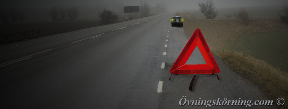 Om hastighetsbegränsningen är 60km/t eller högre måste du sätta ut en varningstriangel. Placera den så att andra förare varnas i god tid! Flytta bilen till en säkrare plats så fort du kan.