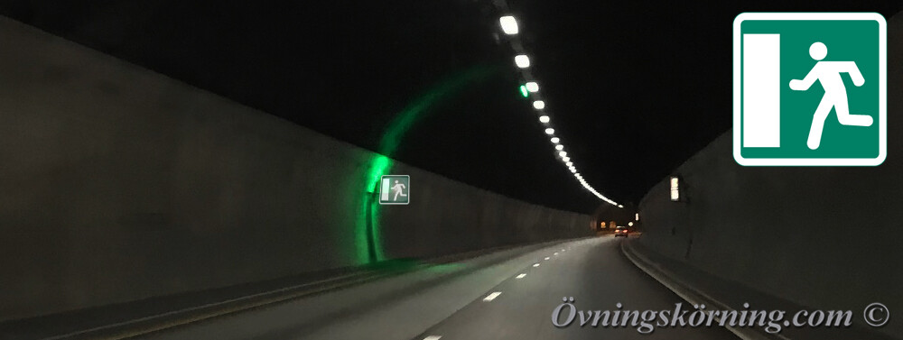 Om det brinner eller är mycket rök i tunneln ska du lämna nyckeln i tändningslåset och lämna bilen omedelbart. Använd skyltad utrymningsväg för att komma ur tunneln.