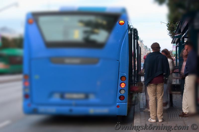 När man närmar sig en buss vid en busshållplats kan det ibland vara svårt att bedöma om det är läge att köra om bussen eller inte. Reglerna säger att man är skyldig att lämna bussen företräde när den blinkar och skall köra ut från hållplatsen om vägens hastighetsbegränsning är 50km/t, eller lägre.